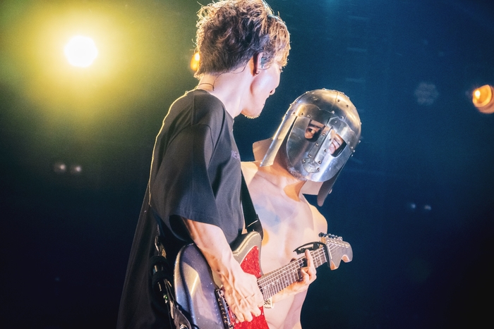 続く「Two Little Fishes」では、鉄の仮面を被ったTOSHI-LOW(BRAHMAN)が登場。コロッセオの剣闘士を想像させる姿で舞台上を練り歩くものだから、メンバーの口角も思わず上がる。尖って、傷つけあって、「何だよ、良い奴だな」なんて分かり合い、時には喧嘩もしたくなる。TOSHI-LOWと細美が交わした熱い抱擁は、彼らが太く太く紡いできた友情とライブハウスシーンの結晶だった。