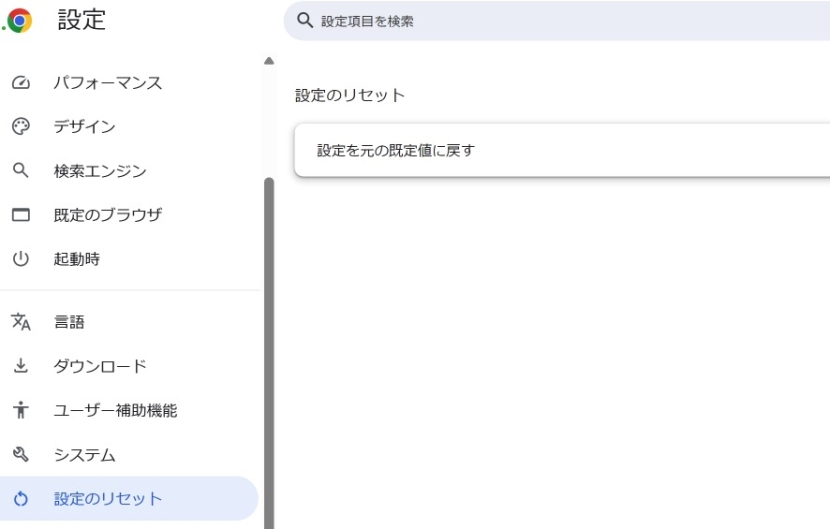設定→「リセットとクリーンアップ」→「設定を元の既定値に戻す」で初期状態に戻せます。基本的にブックマークや保存パスワードは残りますが、検索エンジンやトップページ、拡張機能の設定などは初期化されるので注意してください。