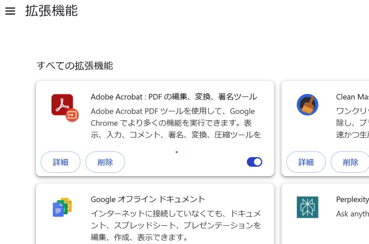 拡張機能は多いほど動作が重くなりやすいので、不要なものは削除しましょう。