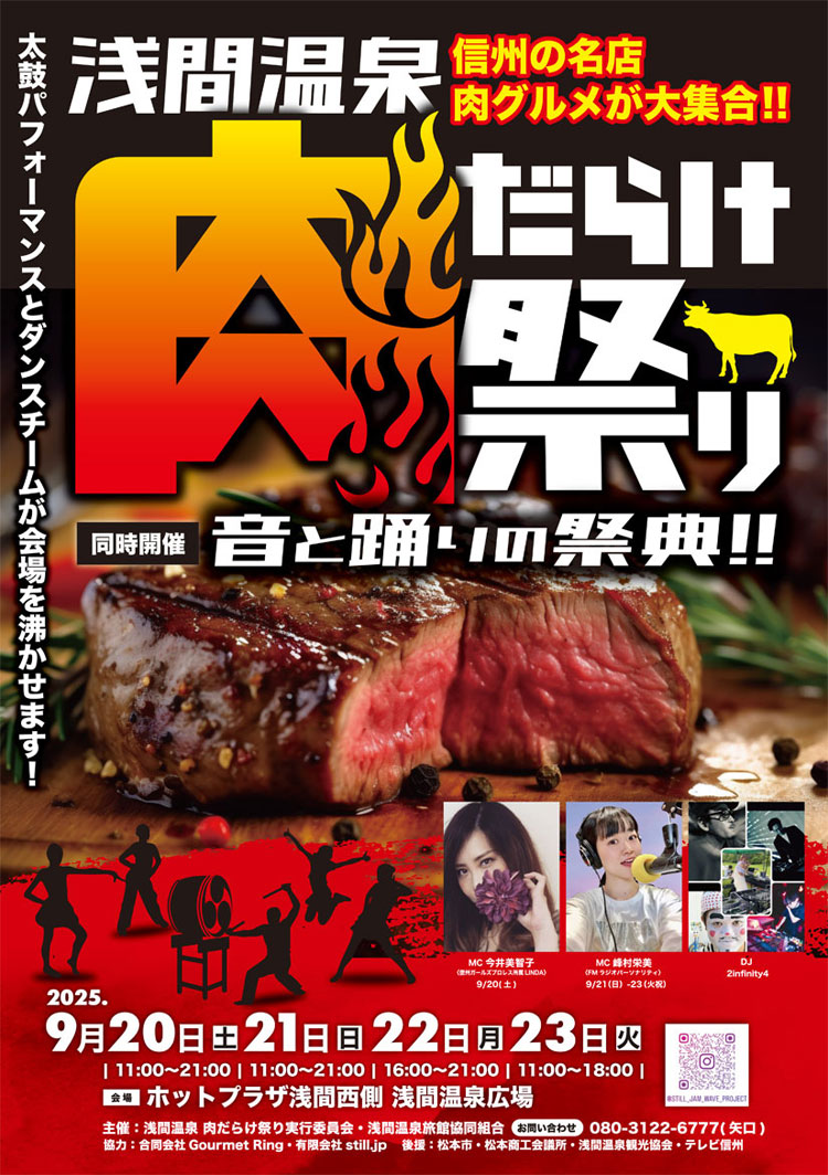 浅間温泉 肉だらけ祭り実行委員会 080-3122-6777(矢口)