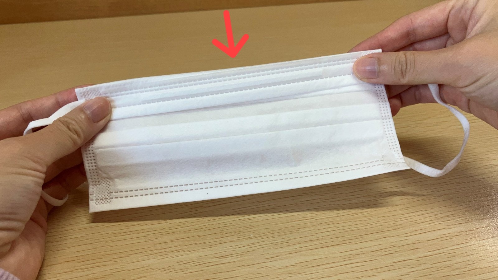 方法はとっても簡単。マスクの上部(鼻のワイヤーが入っている部分)を内側に折り込むだけです。