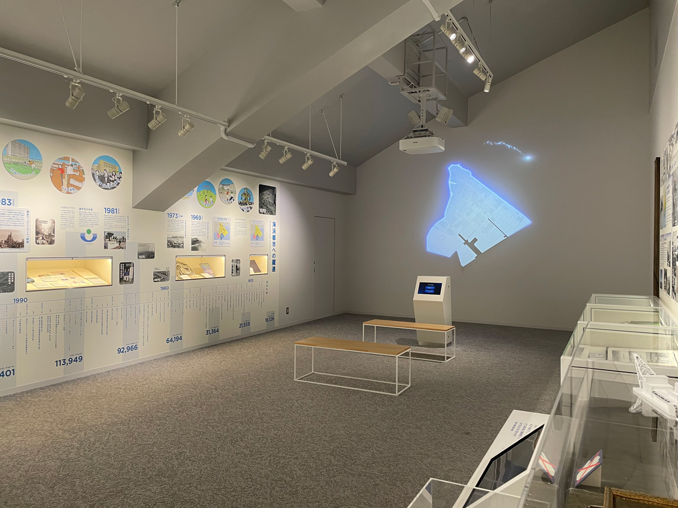 続く「新しい浦安」エリアでは、漁業権を放棄し、埋め立てによって計画的に新しい町を作るに至った経緯について、映像やパネル、模型などを用いて説明されている。