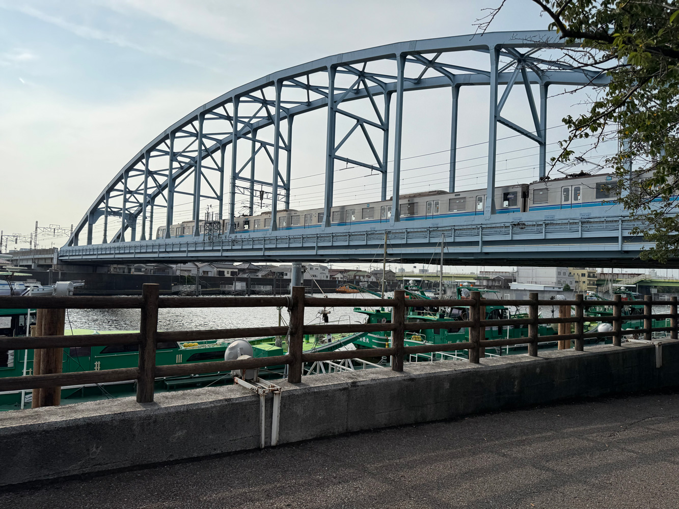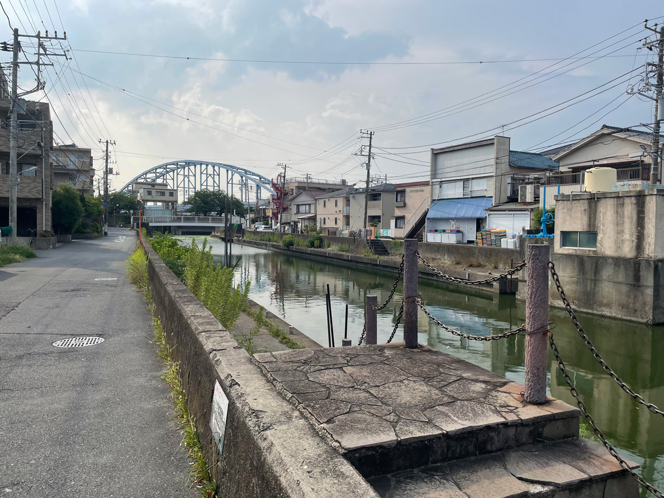 浜土堤を見て満足したあとは、境川をひたすら北上し、旧江戸川を目指す。この日は日差しを遮るものが少ないルートだったので日傘を差して歩いたのだが、地面からの照り返しが思った以上に強く、下からの暑さは日傘では対処できないことを学んだ。とにかく日陰とベンチを見つけるたびに休憩をとる。