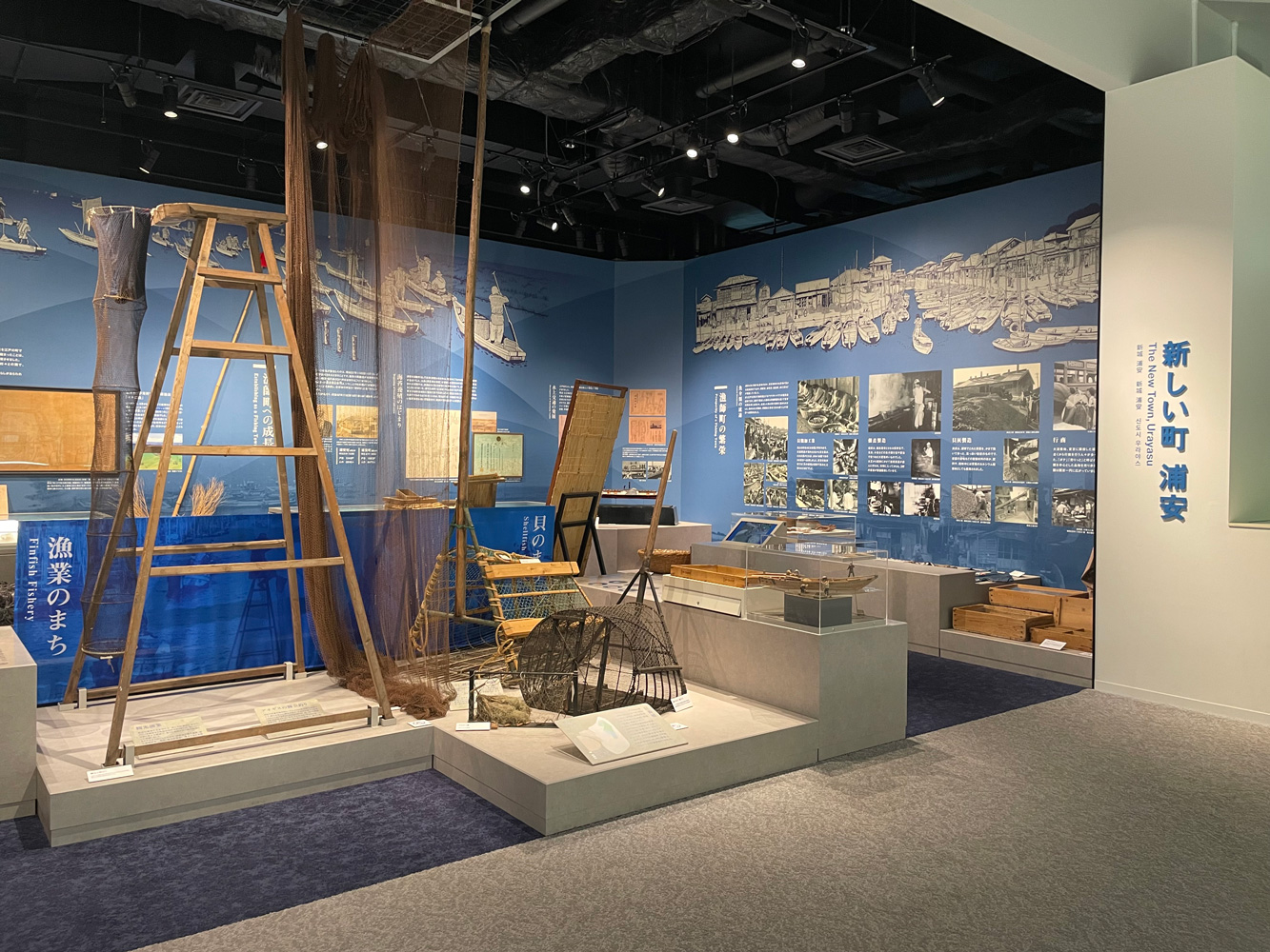 展示場内には1952年頃の浦安の街並みが再現されている。大正15年(1926)築の「たばこ屋(旧本澤家住宅)」や明治後期頃に建てられた「漁師の家(旧吉田家貸家住宅)」、明治38年(1905)頃の建築「魚屋(旧太田家住宅)」など、実際に市内に建っていた住居や建築を移築したものも展示されている。