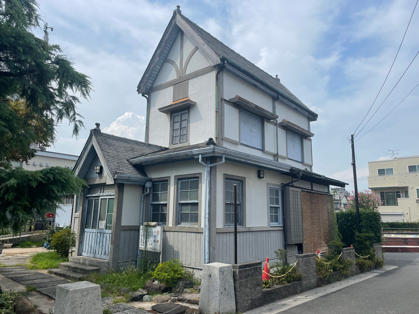 さらに境川沿いを北に歩くと、左手に立派な洋館が見えてくる。昭和4年(1929)に建てられた浦安最初の洋風建築物『旧医院』だ。病院部分は洋風、住居部分は和風となっている。月曜〜金曜は住居スペースで子育て事業が行われており、施設の見学はできないと思いこんでいたのだが、どうやら待合室などの展示部分は見ることができたようだ。次回は内部も見学してみたい。