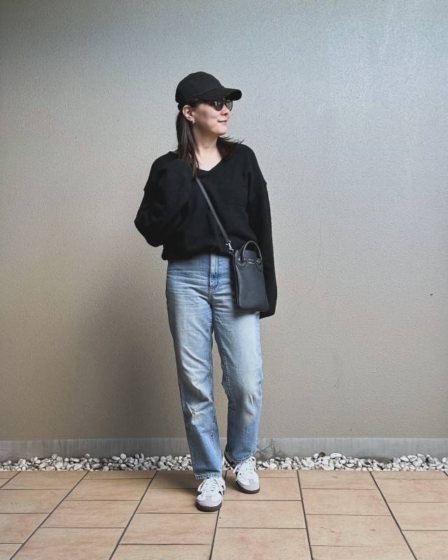 【11月編】センスいいデニムパンツコーデ①黒を使ったカジュアルコーデ