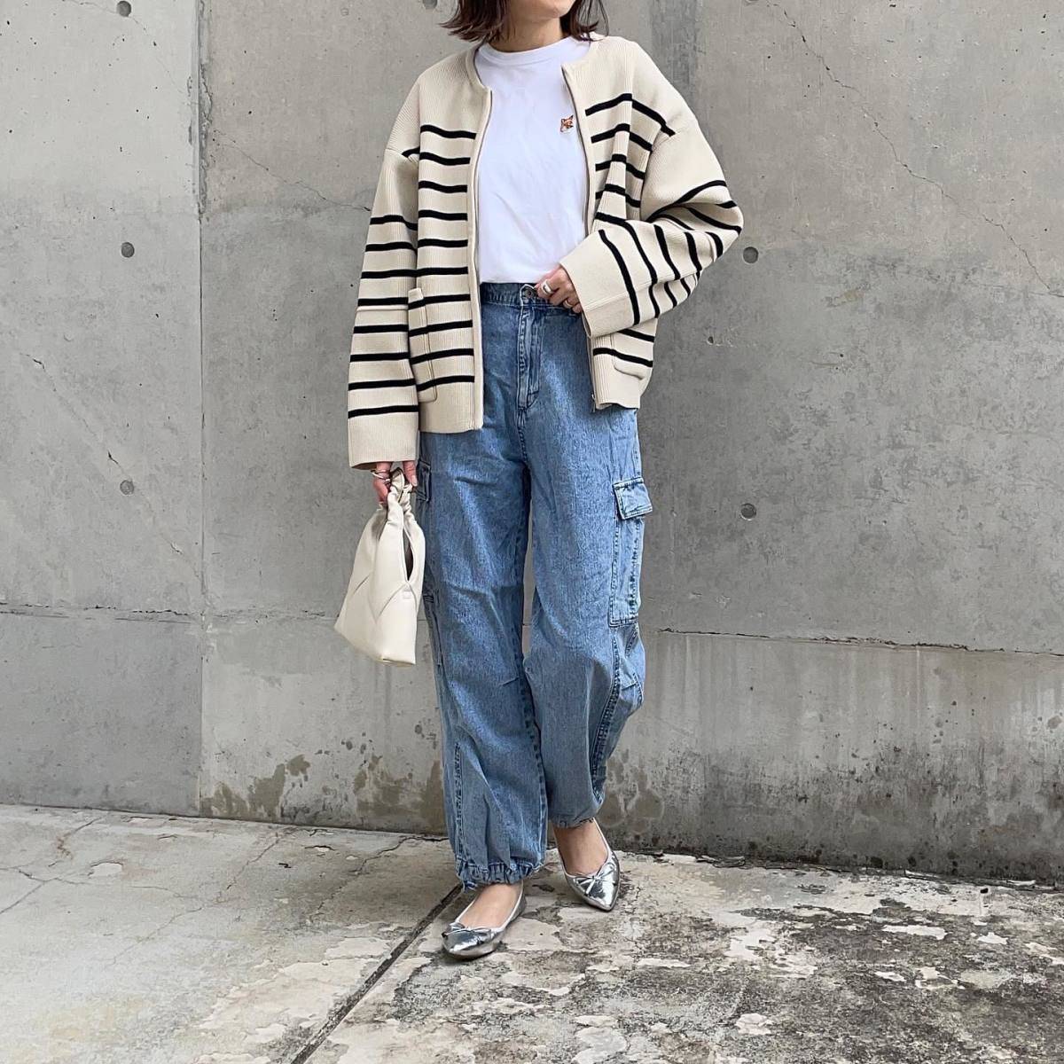 寒い日が増えてくる11月は、白Tシャツの上からボーダー柄のカーディガンを羽織ると◎