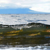 仕掛けは陸っぱりと同様、ウキルアーが一般的。釣り場に到着すると、無数のサケが水面に背ビレを出し、跳ねやモジリも確認できる。ところが、これだけ目の前にサケがいてもウキルアーで食いつかせるのは簡単ではない。遡上を控えたサケはルアーへの反応が鈍いことが多く、食いつくタナやリトリーブ速度をいかに早く見つけだすかが釣果を左右する。そのためルアーの重さや形状、ウキの大きさなど仕掛け全体のバランスが重要になる。勝負タイムは日の出後の数時間。日が高くなるにつれてサケの活性は下がり、食いが渋くなる傾向にある。早朝は神経を集中することが大事だ。