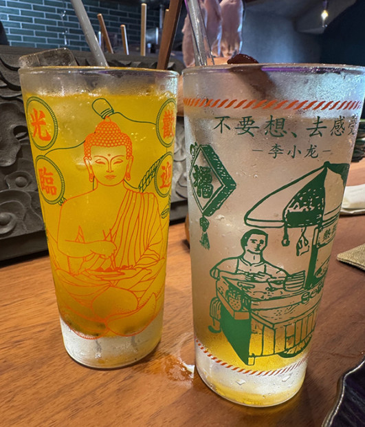 オリジナルのグラスもかわいい♪(パッションフルーツソーダと、林檎シナモンソーダ)