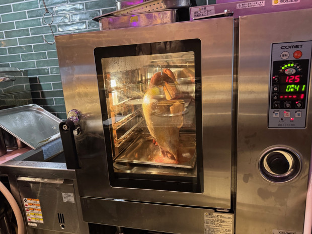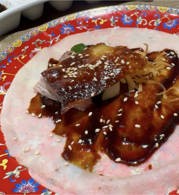 じっくり焼き上げられた、こんがりおいしそうな北京ダック。