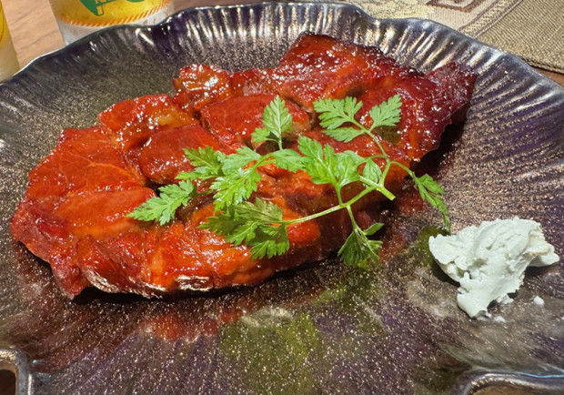 <叉焼とブルーチーズ>練り上げたブルーチーズと、自家製甜麺醤に漬け込んだ甘じょっぱいチャーシューが絶妙にマッチ!