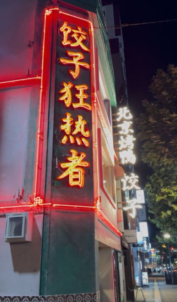 すすきのの街角でひときわ目を引く外観。色鮮やかなネオンが灯り、まるで中国のナイトストリートを切り取ったかのような雰囲気を漂わせています。