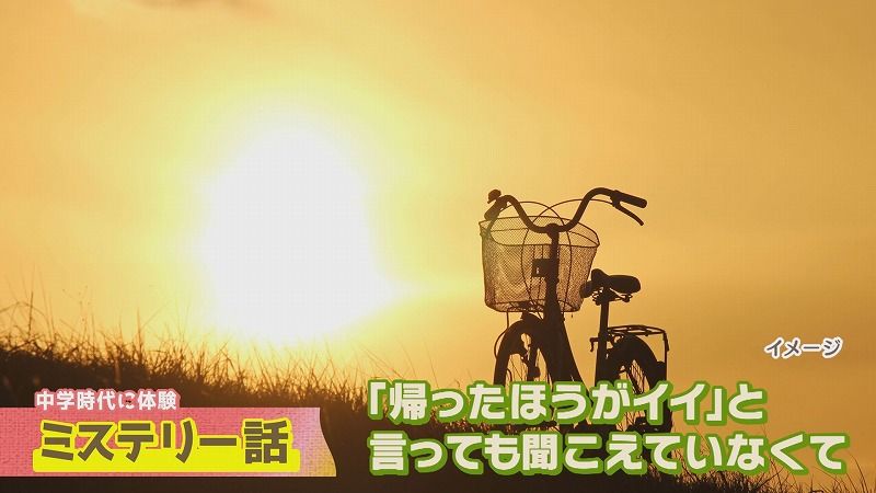 純平さん:「そこに遊びに行くことになり、自転車で10人ぐらい。入り口を自転車で入った瞬間にめっちゃ寒気がして、嫌だなと思った。『コレ帰った方がいいんじゃない!』ってみんなに言ったら、聞こえていなくて。トンネルの中は声が響きやすいのに聞こえてないみたいで…自転車が動かなくなって」