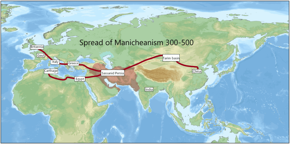 ローマ帝国でもマニ教は一定の信徒を獲得し、エジプトや北アフリカ(カルタゴを含む)で信仰が確認されている。