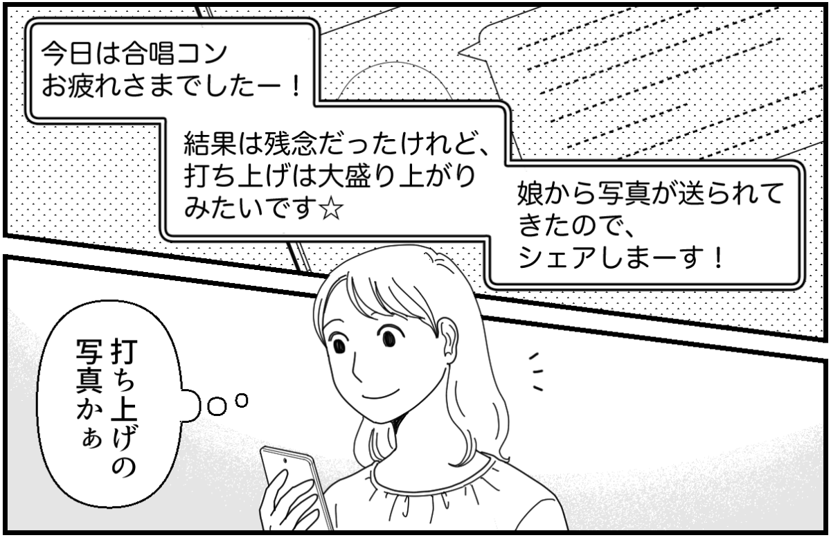 私はカイトが毎日ピアノの伴奏を練習している姿を見て、どうかうまくいきますようにと願っていました。できれば本番も見に行きたかったのですが、カイトに「親が来てる人なんていない」と断られたので仕方なくあきらめたのです。 そして当日の夜、私は夫と夕飯を食べながら「今頃カイトはクラスのみんなと盛り上がっているのだろう」と思っていました。三井さんから送られてきた写真はざっと30枚はあったでしょうか。しかしすべてに目を通したものの、カイトの姿はどこにもなかったのです。楽しそうに笑うクラスメイトの中に自分の息子がいない現実は、私にとってなかなか辛いものでした。