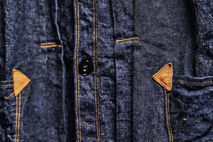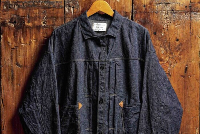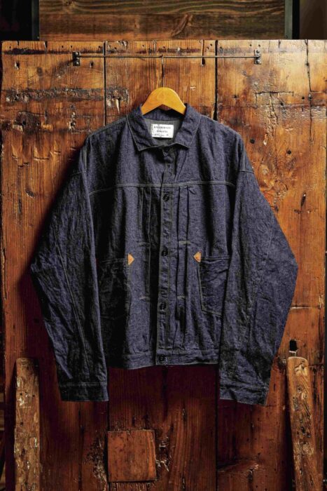 “Gジャンの起源”ともいえるショートタイプのデニムブラウス。19世紀後半の「グリーンバウム ブラザーズ」のヴィンテージを再現している。左右対称に配置されたポケットは、この時代のワークウエアとしては珍しいディテールだ。3万8500円