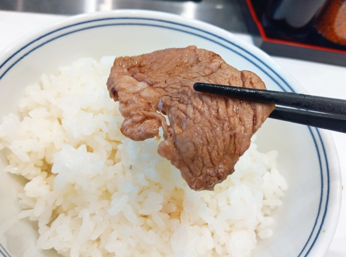 吉野家の風味がする……! タレの味としてはまさしく『だるま』みたいなあの醤油味なんだけど、食べた瞬間、一瞬だけ鼻先を吉野家の牛丼の香りが通り過ぎる。味自体はオーソドックスなジンギスカンのそれなのに、ブラインドで食べても分かるくらいちゃんと吉野家印がついていた。