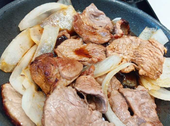 出てきたジンギスカンは、吉野家の牛肉よりは厚めで食べごたえはありそう。タマネギと濃い醤油ダレも含めてちゃんとジンギスカンしてる。しかし、醤油ダレを鍋に入れて食べてみたところ、さらなる衝撃が私を襲った。