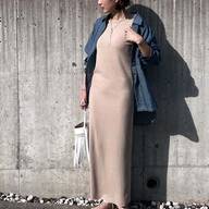 合わせる羽織りや小物のカラーを選ばないベージュのワンピースは、1着持っていると便利♪