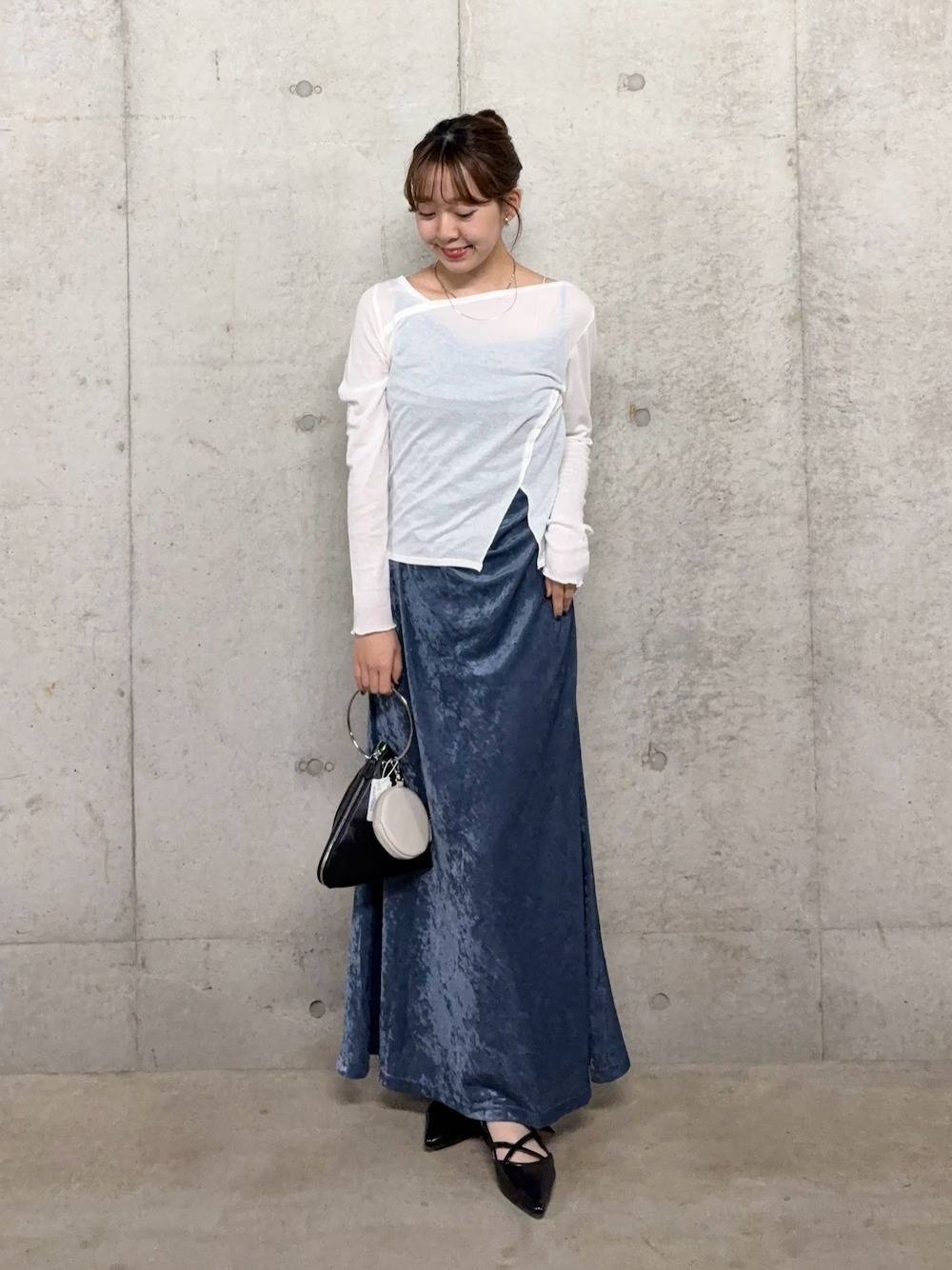 ベロア素材が秋らしいキャミワンピースは、10月はもちろん、着こなし次第で真冬まで着られる着用期間の長いアイテムです♡