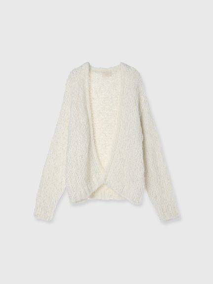 3種類の異なる糸を使用し手作業で仕上げれらた、ざっくり感が魅力のカーディガン。