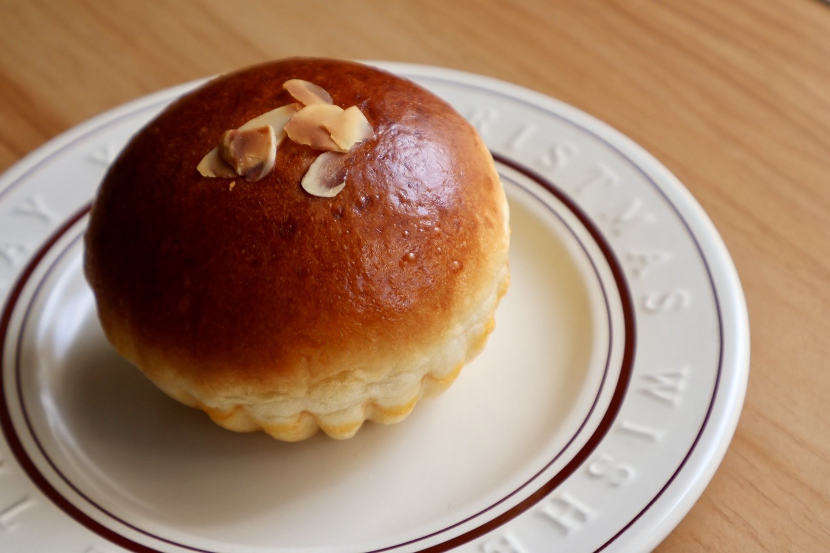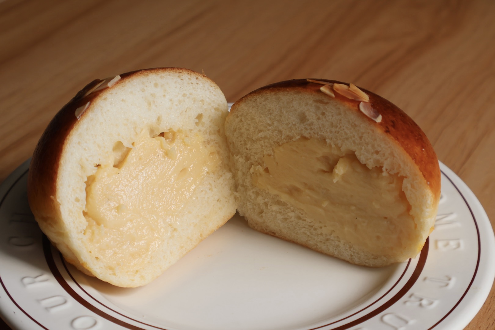 続いては、定番のクリームパンをチョイス!丸みを帯びた見た目がなんとも可愛らしく、パン表面の艶はなんとも美しいですね。