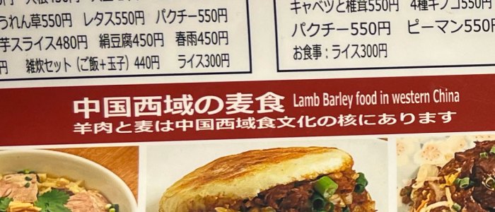 その証拠に、メニューには「中国西域の」といった言葉が踊っている。