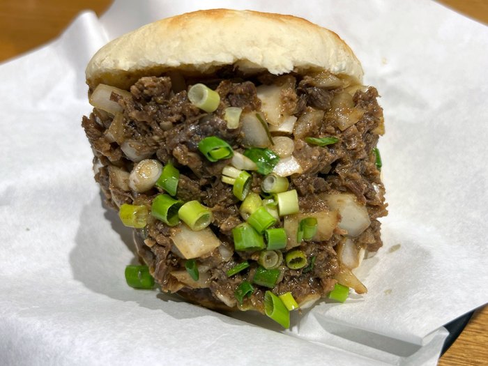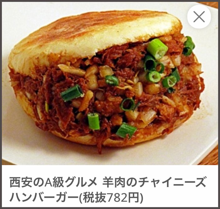 スペアリブの揚げ物に満足したので、もう1品頼むことにしよう。何にしようか……とメニューを眺めている際に気になったのが、「羊肉のチャイニーズハンバーガー(860円)」である。
