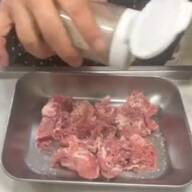 2. 豚肉は食べやすい大きさに切って別のボウルに入れ、サラダ油大さじ1、小麦粉大さじ1を順にまぶす。【A】は混ぜ合わせる。