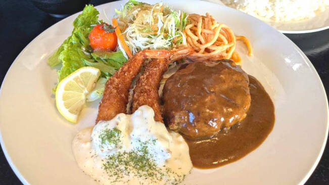 創業1972年。松山市宮西で、昔ながらの洋食をビアホール感覚で楽しめる店として長年愛されていた「モルゲン」。道路拡幅事業での立ち退きで惜しまれつつ一時店を閉めたが、2024年に移転。場所は三角屋根が目印、穏やかな川が真横に流れる久万高原の旧柳井川小学校跡だ。現在では松山~高知のドライブ、四国カルスト観光の際、ちょうど腹ごしらえをしたい絶好のタイミングで出合える洋食店になっている。もちろん、50年以上松山で続いたあの味を求めてやってくる人も。ハンバーグをはじめセットメニューはすべて1,000円、ランチタイムは設けず終日味わえる。ぎっしり具材が入ったたまごサンドや丼などのテイクアウトメニュー、冬限定で登場するオムライスや肉まんもお楽しみに。週末は混み合うので、時間にゆとりをもって訪れて。