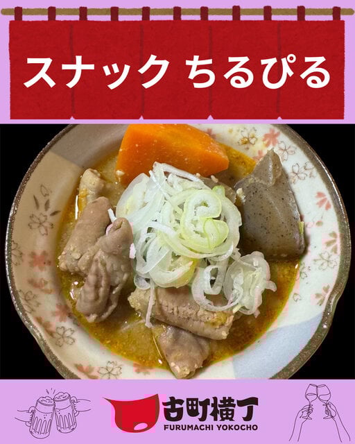 ⑥スナック ちるぴる【お酒が進む特製もつ煮、推し活ドリンク】