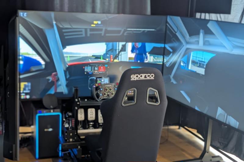 座席は振動し、65インチ4Kモニターを3枚使用した超ワイドビューが目の前に広がります。まるで実際にコースを走っているかのような臨場感と没入感。