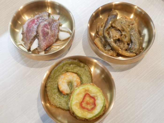 日替わりの”おかず”たちも主役級のクオリティ。この日は「エホバチョン(韓国かぼちゃの卵焼き)」「ナスのナムル」「牛肉のたたき」が用意されていました。