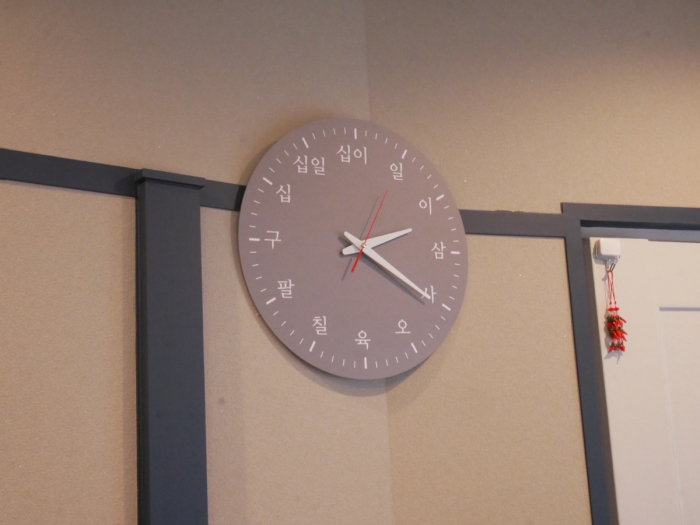 壁には韓国語で数字が書かれた可愛らしい時計が掛けられていました♪ゆったりとした音楽が流れており、どこかほっとするような居心地の良さです。