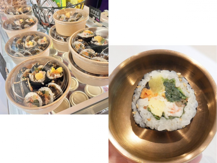 ちなみにテイクアウト用のオリジナルキンパも人気メニューのひとつ。具材のバランスにこだわり、彩りも美しく、食べ応えも抜群です。