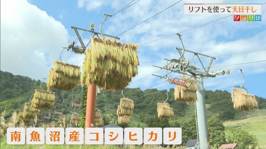 2年目となった昨年からは、同施設から望める満天の星にちなんで温泉やプールの名称にもなっている「星空」を使い、「星空米」とネーミング。田んぼ脇でのはさがけのほか、スキー場のリフトを使った天日干しも始めた。