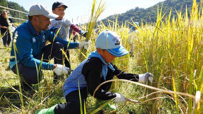 9月28日にはホテル宿泊者や従業員や地元住民などが参加して、稲刈りイベントが行われる。