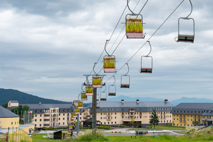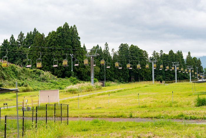 スキーリフトで「星空米」の天日干し始まる 妙高市のロッテアライリゾート