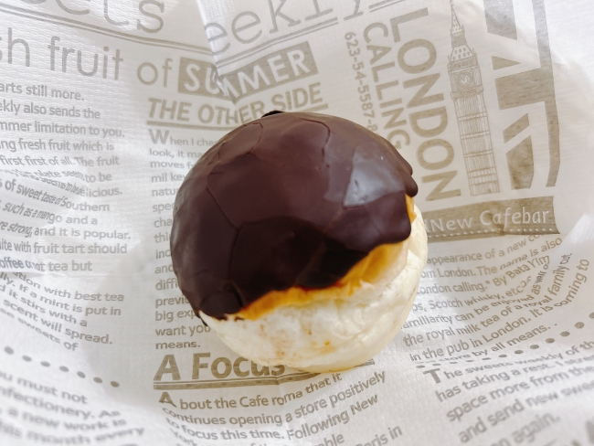 続いては、チョコレート好きにはたまらない『チョコくりーむパン』(173円)。パンの上半分がチョコレートでコーティングされているだけではなく、中のカスタードクリームも濃厚なチョコ風味になっています。子どものおやつにもぴったりの大満足なパンです。