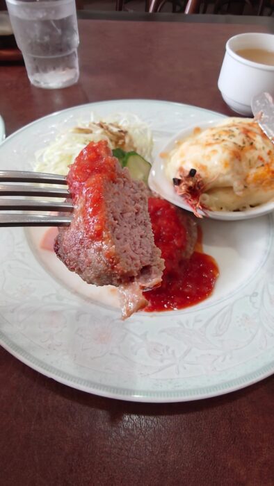 ハンバーグも肉の旨味がギュッと詰まった感じです。お腹いっぱいになりました。