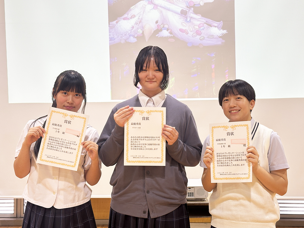 北九州市保健所医務薬務課からは「正しい知識と当事者意識の両方が防止活動の要です。子どもを守り、社会を良くしたいという動機が伝わる内容でした」として高く評価。今後の総合探究での継続活動を支援・連携する意向が示されました。