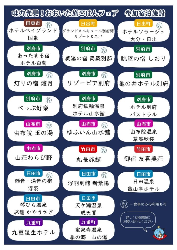 フェア参加店舗(別府市・日田市・竹田市・由布市・国東市・日出町・九重町)