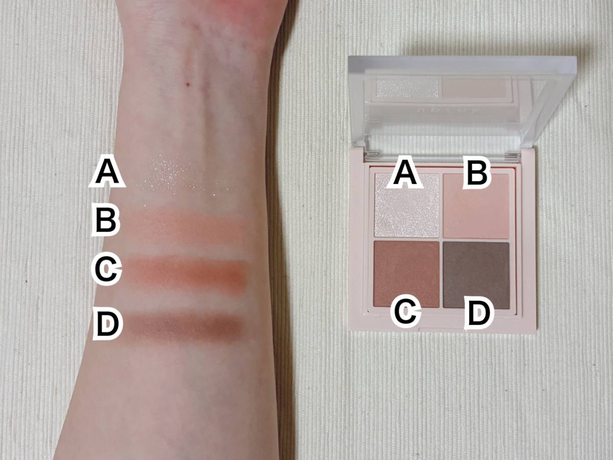 upink「シャインオンステージアイパレット」〈MC01 テディベアバニラ〉を以下の順に塗布しました。