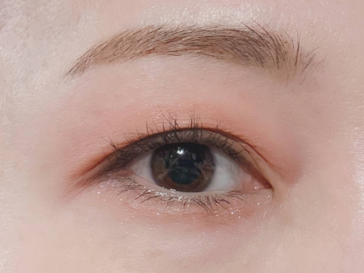 目を開けると、上まぶたの「C:赤みブラウン」が優しい印象*を与えてくれているのがわかりますね。