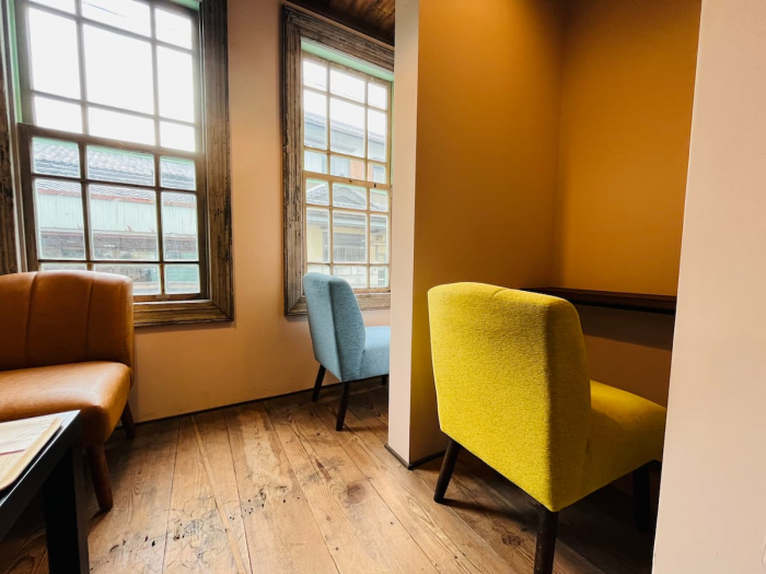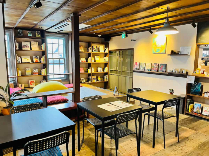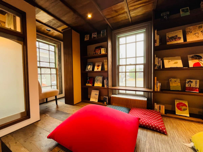 1人席で本に集中できるところから、大きなクッションでゆるりと座れる場所まで。宿泊客もカフェ利用の方も、本を読みながら、思い思いの時間を過ごしているそうです。