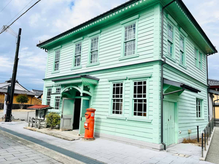 大正時代から続く旧辻川郵便局を改装して作られた建物は、柔らかなミントグリーンの外観が印象的。2階は宿泊施設、1階がカフェになっています。