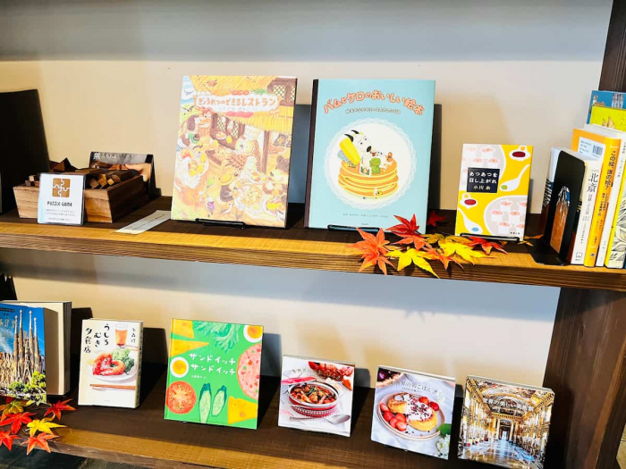 特に妖怪に関する書籍や絵本が充実しており、レジ下のコーナーに置かれた本は季節ごとに少しずつ入れ替わるそうです。今の時期は“食”や“芸術”にまつわる本が並べられていました。