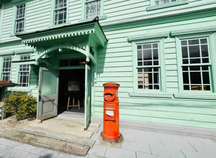 カフェの前には今も現役の赤い郵便ポストが。記念にここから投函したハガキはちゃんと届くそうです。ポストを覗き込んでいたら、地元の方に「異界につながっているかもよ?」とからかわれた筆者でした(笑)。