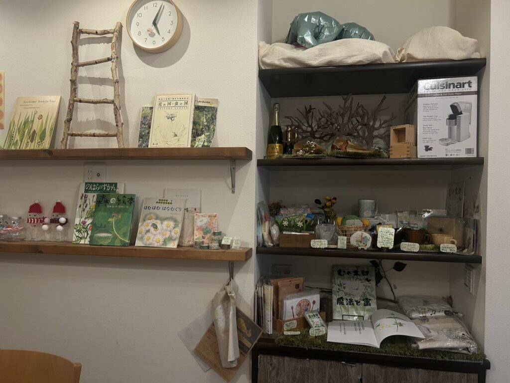 約15種類のむぐ太郎の雑貨や絵本も販売されており、むぐ太郎ファンにはたまらない空間です。