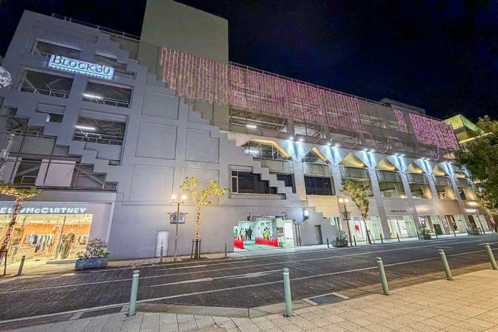 『大丸神戸店』の駐車場『BLOCK30』の北側にもほんのりと光をまとい、ホリデー気分が高まります。